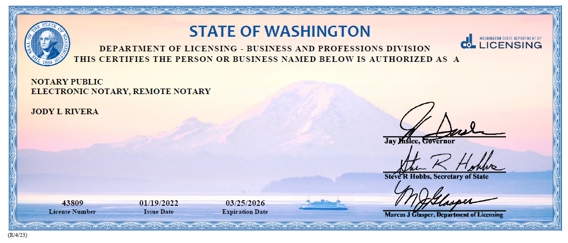 General Notary: Affidavit, Apostille(starting...quote subject to change), Authentication(starting...quote subject to change), Estate Plan/Living Trust Package, Verification of Identity, Health Care Directive, Last Will and Testaments, Marriage License, Other(starting...quote subject to change), Power of Attorney (POA), Quit Claim Deed, Retirement Documents, Travel documents, Vehicle Transfer, Translation Services, Proof of Life, Rent/Lease Agreement, I-9 employment forms